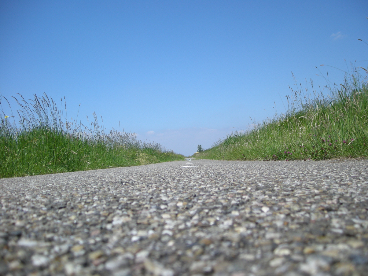 Via het gehucht Leihoek bereik je een vervelend lange grasdijk. De dijk is onregelmatig en dat loopt vervelend. Ter verhoging van de feestvreugde groeien er hoge distels.